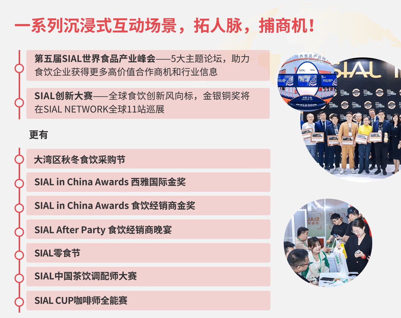 | 借助數(shù)字化手段全年為展商提供對接服務(wù)的【SIAL 在線小程序】,目前已入駐100,000+買家、5,000+展商、20,000+ 展品,日訪問量達8,000+、已達成約20,000場配對;此外,提供在線展商名錄、產(chǎn)品名錄以及商貿(mào)配對的【SIAL 商機在線】,以及【Match Me供需配對】,都將幫助全球食飲人360°貿(mào)易對接。 |