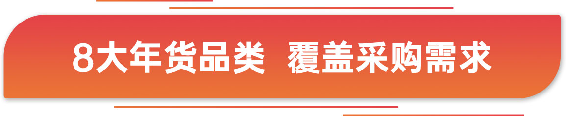 | 以食飲年貨采購(gòu)為基礎(chǔ)需求,結(jié)合當(dāng)下市場(chǎng)消費(fèi)熱點(diǎn) 打造8大年貨品類,基本覆蓋全場(chǎng)景采購(gòu)需求 |