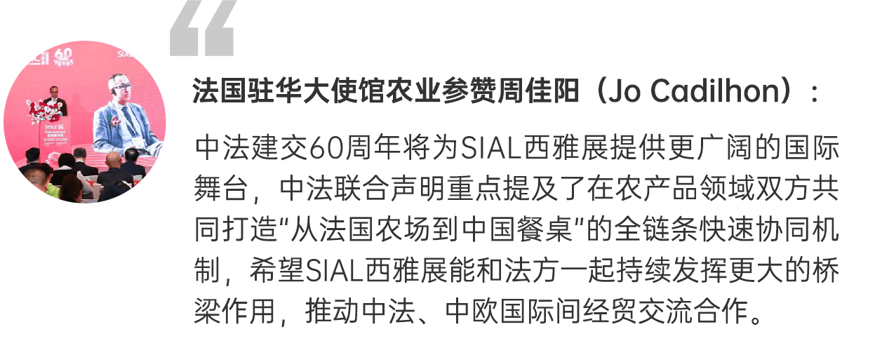 | 北京愛博西雅展覽有限公司董事總經理、中國會展經濟研究會副會長:我們非常希望通過SIAL西雅展的努力,能夠帶給展商、買家非常好的生意,給國內外市場帶來非常好的產品,為所有的食飲企業朋友們帶來更廣闊的突破和成長空間。 | ||