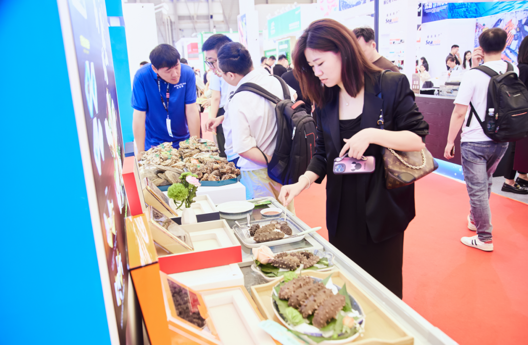 在上海新國際博覽中心E4館水產專區,熱鬧非凡的“好客好品 好水好魚”水產展示區吸引了眾多采購商的目光。展區內,“好當家”威海刺參、“裕鮮舫”深海野游大黃魚、“燈塔水母”氮凍半殼牡蠣、“小魚兒”煙臺大菱鲆、“恒盛”黃河口大閘蟹、“山海萃”長島生蠔、“美加佳”生食甜蝦、“我愛漁”銀鱈魚、“京魯遠洋”天婦羅蝦、“香滋來”麻辣小龍蝦仁、“崟海”三文魚烤串、“佳寶水產”魷魚仔……各式各樣的山東水產品琳瑯滿目,從深海珍品到淡水佳肴,從鮮活海鮮到加工制品,無不彰顯著山東水產品類的豐富多樣和品質地道。背靠大陸、面朝海洋的優越地理環境和得天獨厚的海洋資源孕育出的口感鮮美、營養豐富的“魯”字號水產品、加工產品及海洋休閑零食等,贏得了駐足采購商的一致好評,并達成多項采購意向。