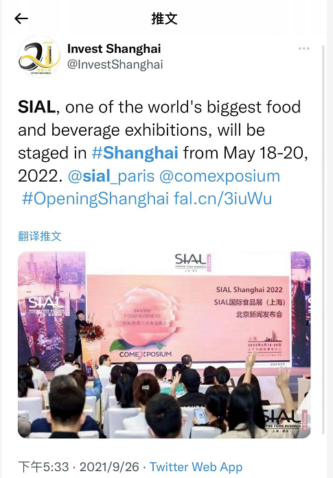 上海外商投資促進(jìn)服務(wù)平臺(Invest Shanghai)為SIAL 2022 國際食品展(上海)點(diǎn)贊