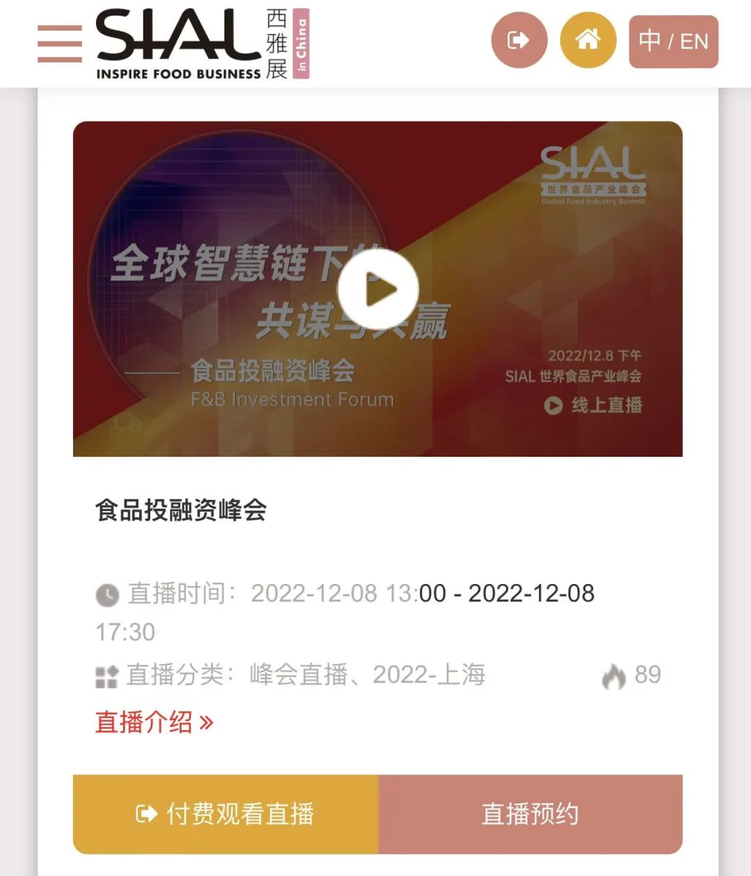 直播當天登錄直播頁面,點擊已預約或兌換的論壇下方的“付費觀看直播”即可觀看。