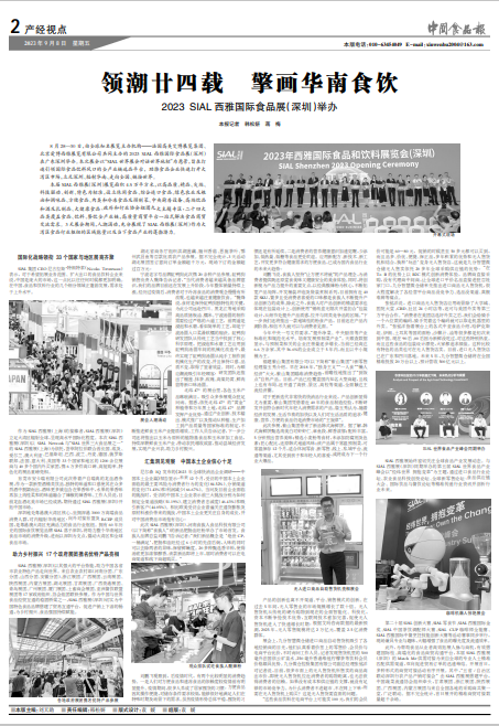 8月28日,由法國高美艾博展覽集團、北京愛博西雅展覽有限公司共同主辦的2023 SIAL西雅國際食品展(深圳)在廣東深圳開幕,吸引了全球33個國家和地區1200多個展商與40多個國內外買家團參展。