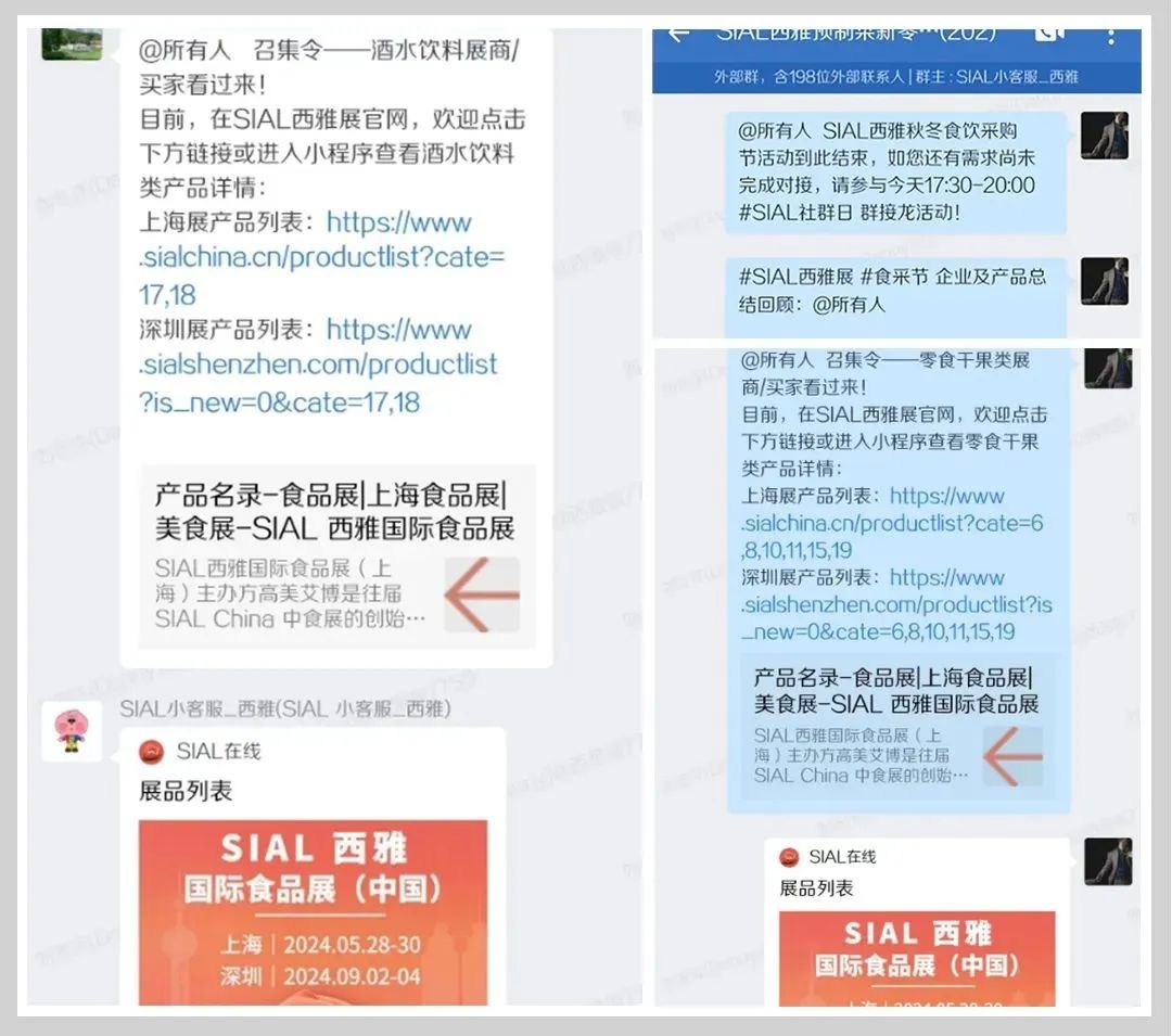SIAL西雅展私域社群推介是線上年貨采購節(jié)的重點環(huán)節(jié)。私域社群是SIAL西雅展為食飲展商和買家打造的,專門用于食飲B2B商貿(mào)交流的平臺,其中絕大部分為SIAL西雅展多年服務(wù)的優(yōu)質(zhì)展商以及優(yōu)選買家。