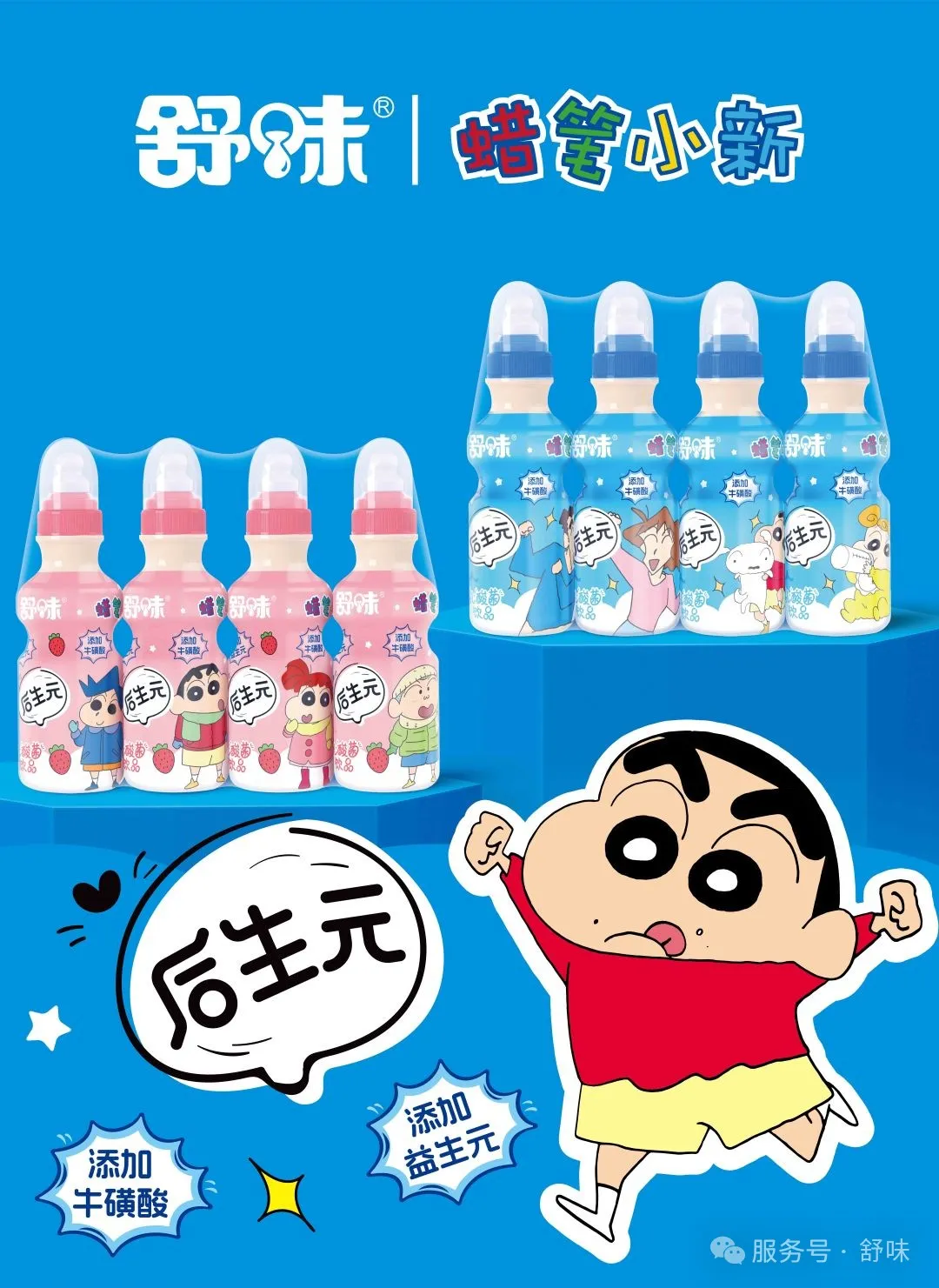 產(chǎn)品亮點(diǎn):聯(lián)合活潑可愛(ài)的蠟筆小新形象推出的舒味乳酸菌,添加牛磺酸、益生元,自然發(fā)酵,純正好味,0脂健康,適合朋友小聚時(shí)來(lái)一瓶。