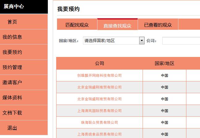 通過登錄系統(tǒng)不僅可以提前預(yù)覽展商名單,還能提前預(yù)約心儀的觀眾于5月14至16日間的任何時(shí)段于中食展現(xiàn)場(chǎng)見面,快捷高效。